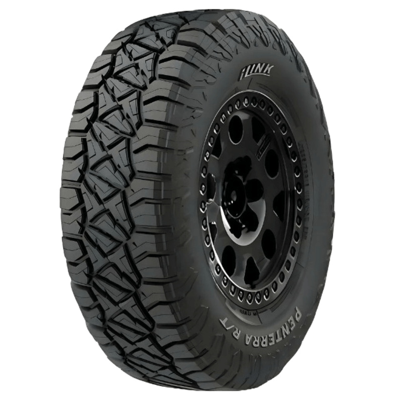 La llanta 35X12.50R17LT 121QIlink Penterra R/T esun neumático de alto rendimiento para terrenos Rugged Terrain (R/T) diseñado para camionetas y SUVs, ofreciendo un equilibrio entre tracción agresiva fuera de carretera (lodo, grava) y confort en asfalto. Cuenta con construcción de 10 capas (10C) para mayor durabilidad y un diseño robusto en los hombros.
