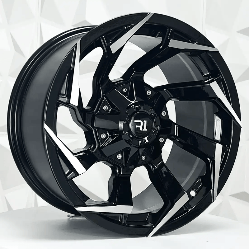 Paquete de 4 Rines 16X8.5 5-139.7 R1 SPORT Mod: 6305 ET-10 CB108.1 BLACK MACHINE FACE