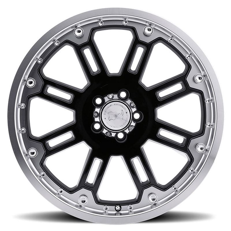 Paquete de 4 Rines 20X9 5-114.3 BLACK RHINO Mod: ROCKWELL ET-12 CB76.1 GLOSS BLACK W/ MACHINED LIP